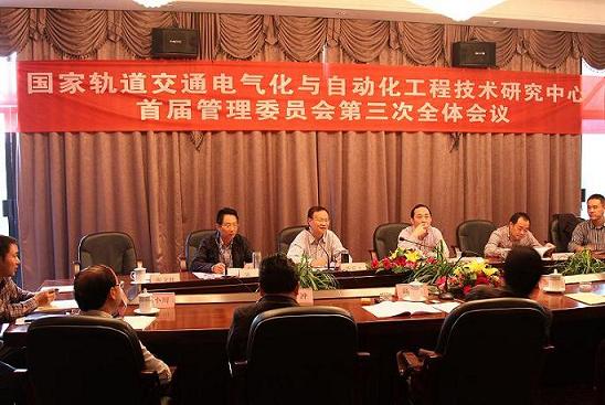 2011年10月12日上午9:30,国家轨道交通电气化与自动化工程技术研究中心(以下简称“国家工程中心”)首届管理委员会第三次全体会议在我校镜湖宾馆若愚厅举行。四川省科技厅副厅长、工程中心首届管理委员会副主任罗治平、高新处处长田云辉;国家工程中心首届管理委员会主任、常务副校长蒋葛夫、科学技术处、计财处、交大产业集团、电气学院、国家工程中心等相关部门负责人参加了会议。会议由国家工程中心首届管理委员会副主任、副校长蒲云主持。