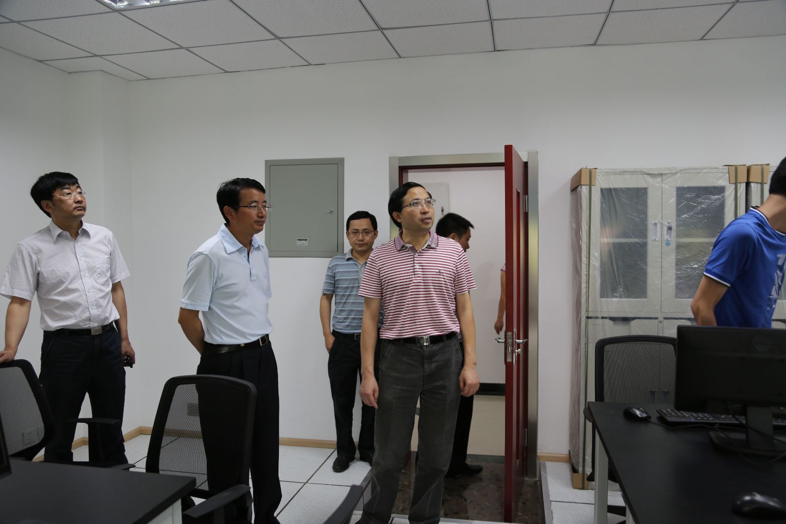 6月13日上午,校长陈春阳、校办主任赵彦灵来到国轨电自中心(以下简称“中心”),检查指导中心筹建工作。