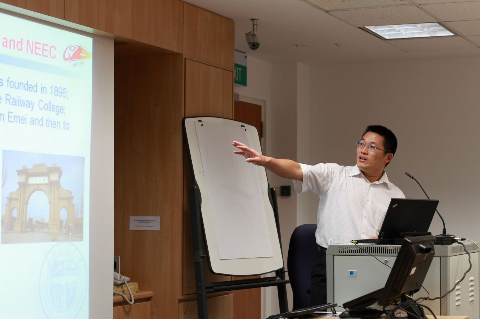 代表团首先访问了淡马锡理工学院,受到了校长Boo Kheng Hua先生的亲切接待,校长充分肯定了淡马锡理工学院与西南交通大学电气工程学院之间的合作成果,在过去8年中,双方共有68名学生完成了交换学习任务,目前还有3名交大学生正在淡马锡开展硕士学位论文工作。代表团与淡马锡理工学院洁净能源研究中心的研究员韩明博士、贾俊波博士等开展了学术交流,陈维荣教授介绍了工程中心的牵引供电综合SCADA、电气化铁路同相供电、燃料电池机车等研究成果,韩明博士介绍了燃料电池及液流电池的研究进展情况,贾俊波博士介绍了电动汽车网络方面的研究情况。经过充分的学术交流,双方同意,在继续推进双方学生培养方面的交流之外,要深入开展科研项目方面的交流与合作。