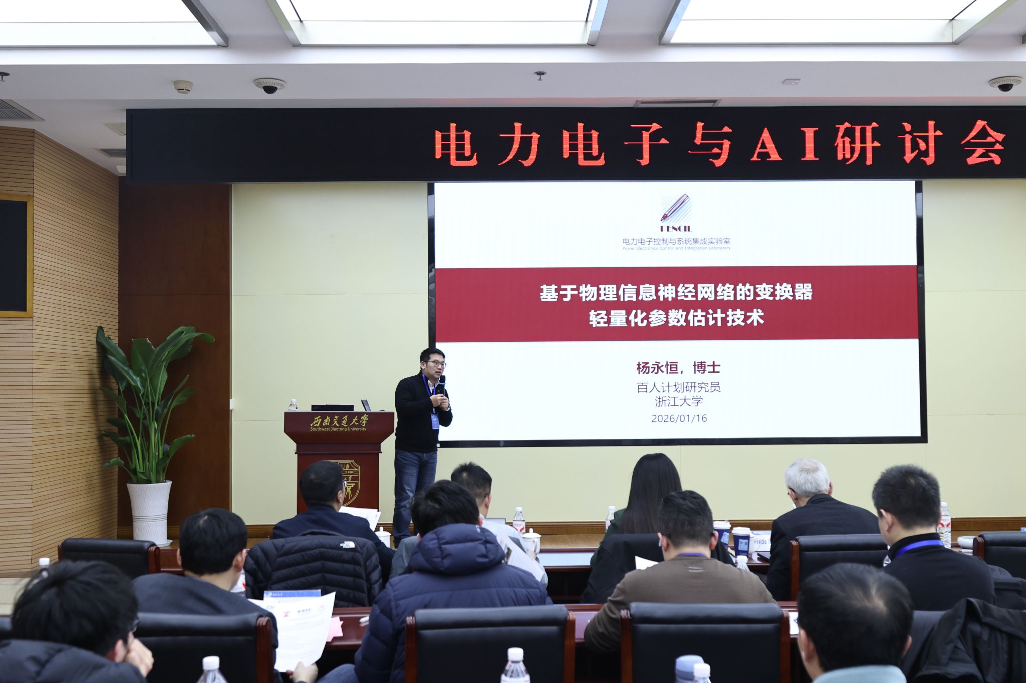 2025年1月16日下午,由西南交通大学、国家轨道交通电气化与自动化工程技术研究中心,四川省电力电子学会,IEEE PELS Membership Committee-China联合主办的“电力电子与AI研讨会”(Power Electronics and AI Symposium, PEAIS)在犀浦校区综合楼148会议室成功举办。会议聚焦电力电子与人工智能的前沿交叉领域,吸引了来自国内外知名高校、科研院所及行业企业的130多位专家学者和学生。