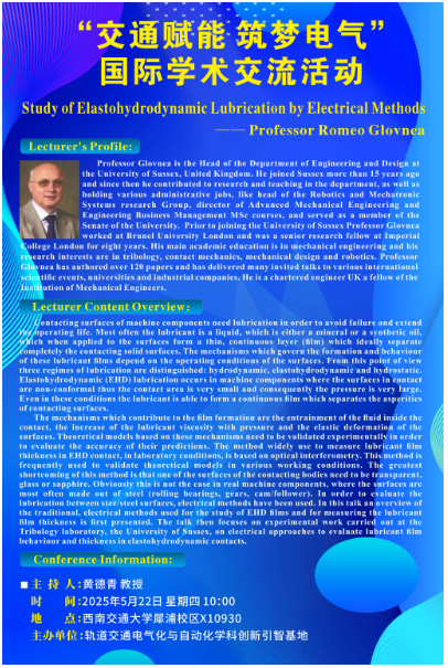 Contacting surfaces of machine components need lubrication in order to avoid failure and extend the operating life. Most often the lubricant is a liquid, which is either a mineral or a synthetic oil, which when applied to the surfaces form a thin, continuous layer (film) which ideally separate completely the contacting solid surfaces. The mechanisms which govern the formation and behaviour of these lubricant films depend on the operating conditions of the surfaces. From this point of view three regimes of lubrication are distinguished: hydrodynamic, elastohydrodynamic and hydrostatic. Elastohydrodynamic (EHD) lubrication occurs in machine components where the surfaces in contact are non-conformal thus the contact area is very small and consequently the pressure is very large. Even in these conditions the lubricant is able to form a continuous film which separates the asperities of contacting surfaces.