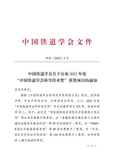 Recently, the 2022 "China Railway Society Science and Technology Award" was officially announced, of which 2 host achievements and 2 participation achievements of the School of Electrical Engineering were awarded. Among them, the project of "Key Technology and Equipment for Dynamic Simulation of High-speed Train Operation" hosted by Professor Feng Xiaoyun won the first prize, and the project of "Security Evaluation of Plateau Railway Traction Power Supply System Grounding Backflow Safety Evaluation" hosted by Professor Chen Minwu Key Technology and Application" won the second prize.